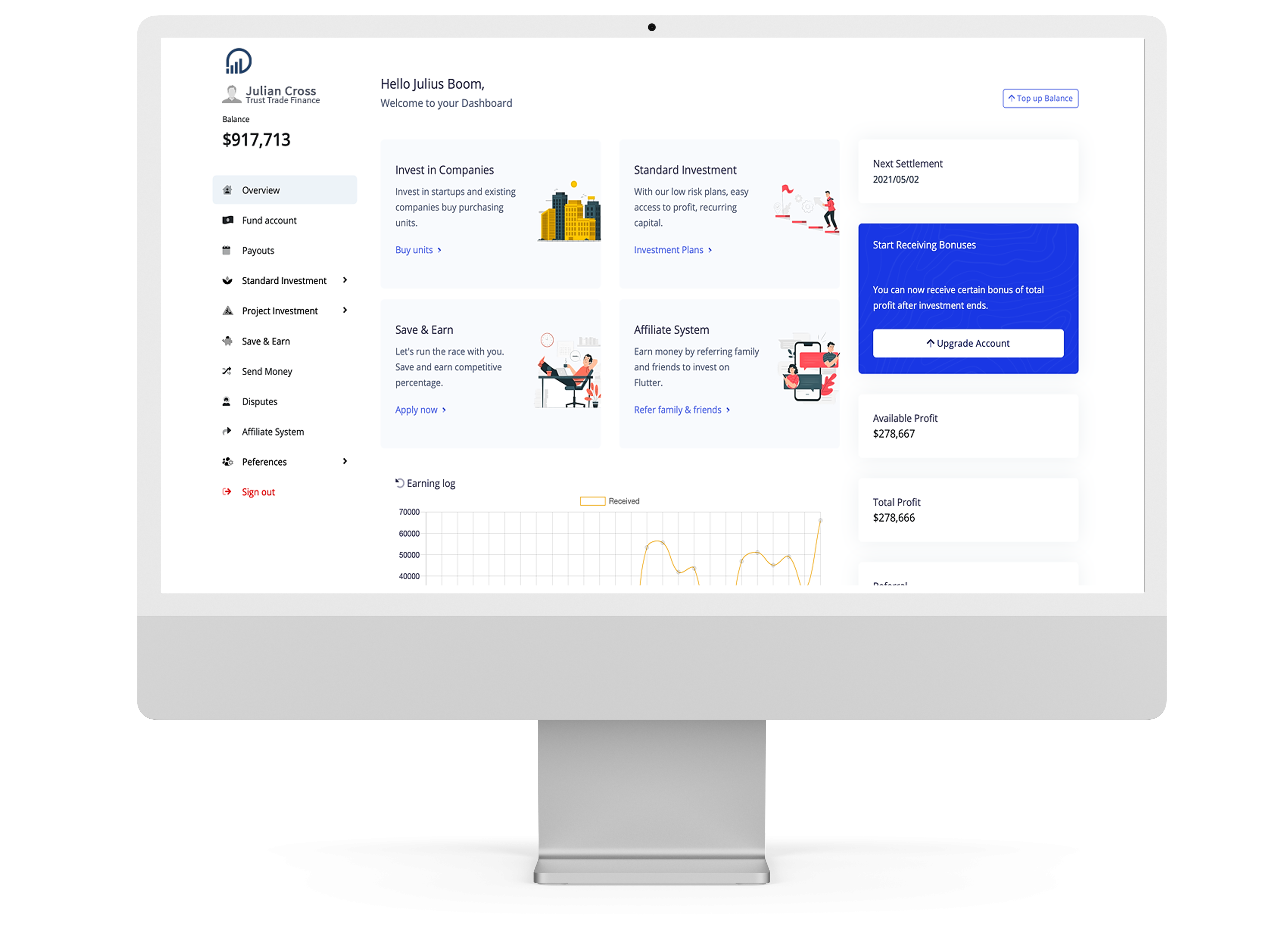 Invest and sit back. You can follow your investment status at any time and invest in limited time special offers.